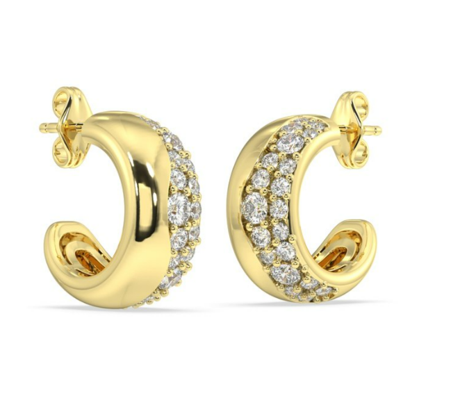 Add a sparkle that’s anything but ordinary with these 3/4 CTW Lab Grown Half Wave Huggies. Crafted in radiant 14kt gold and showcasing shimmering lab-grown diamonds, these earrings deliver eco-friendly glam with a twist. Perfect for brightening your day or turning heads on a night out!